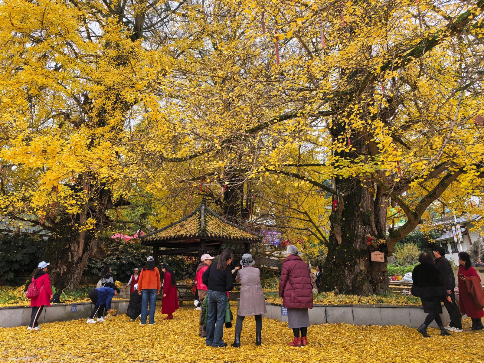 近日,修文縣六屯鎮(zhèn)大木村的古銀杏群迎來了初冬時(shí)節(jié)的獨(dú)特景致。在大木村金葉廣場(chǎng),3株樹齡超400年的古銀杏呈“品”字形巍然屹立,金黃的葉片為這座“貴州省最美紅軍村落”鋪就了一層金色地毯,盡顯初冬韻味,吸引著眾多游客前來打卡賞秋?!皝淼酱竽敬逦腋杏X很開心,特別…